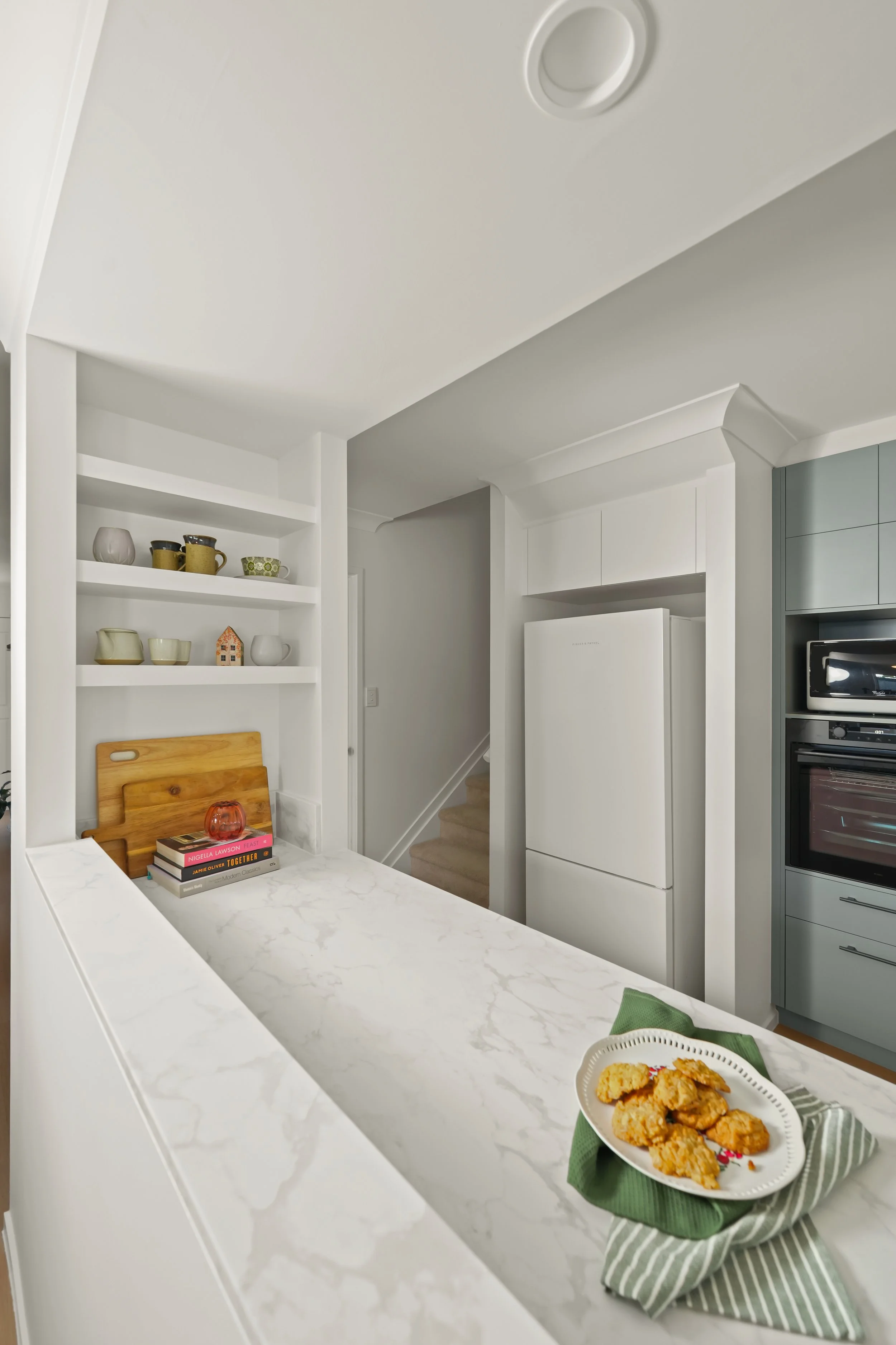 A small footprint kitchen refresh for the new owners of this townhouse. while the floor plan wasn’t changed, we maximised storage, prep and cooking space and updated the finishes to match the wider refresh. New paint, flooring and window finishes completed this light-touch renovation.